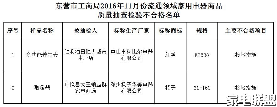 [其他] 家用电器质量抽检 2批次产品不合格 |