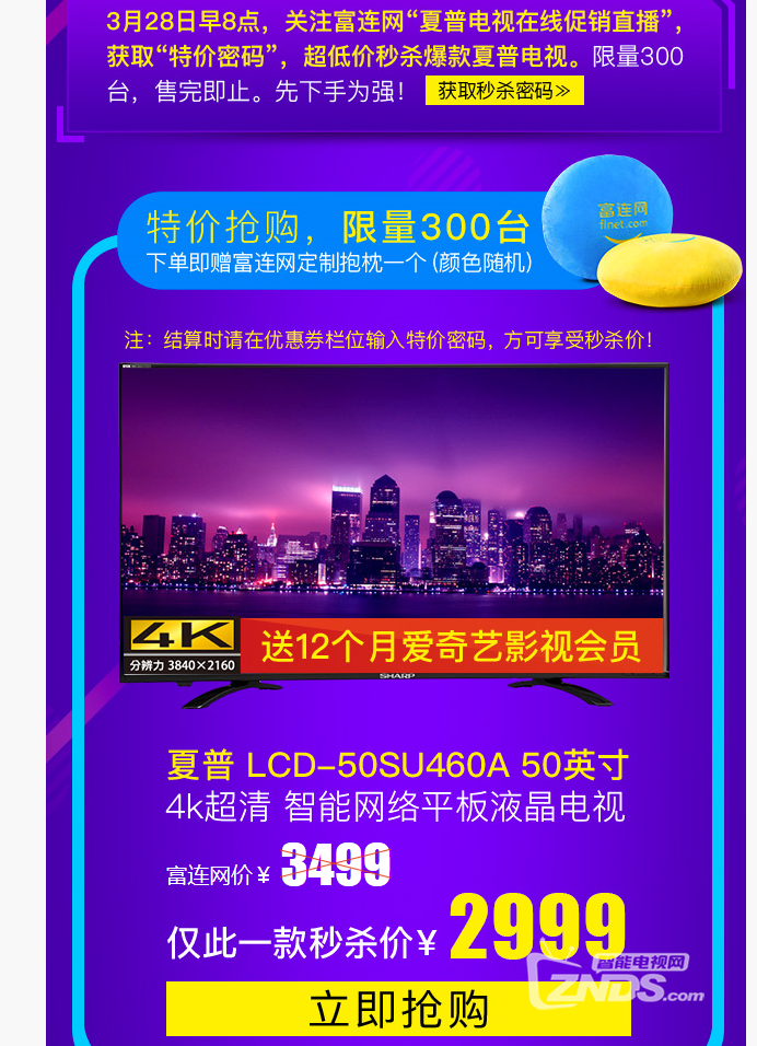 [量子点/液晶电视] 夏普50寸爱奇艺版电视富连网卖2999,看上去挺好 |