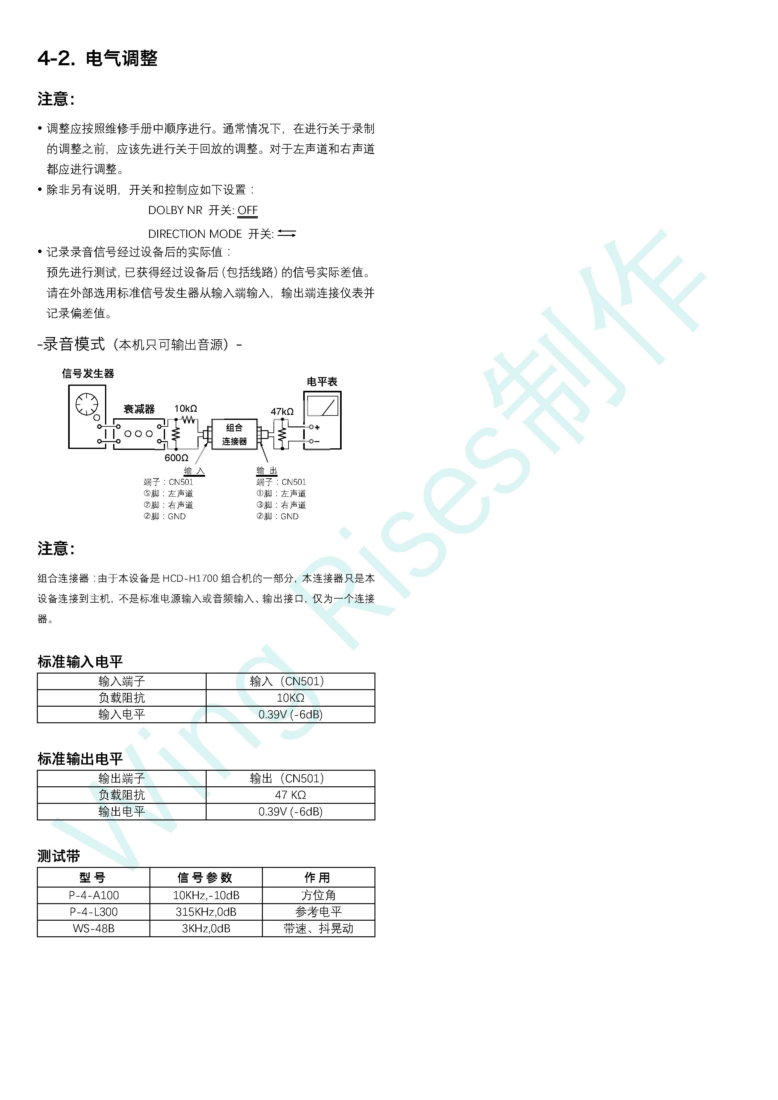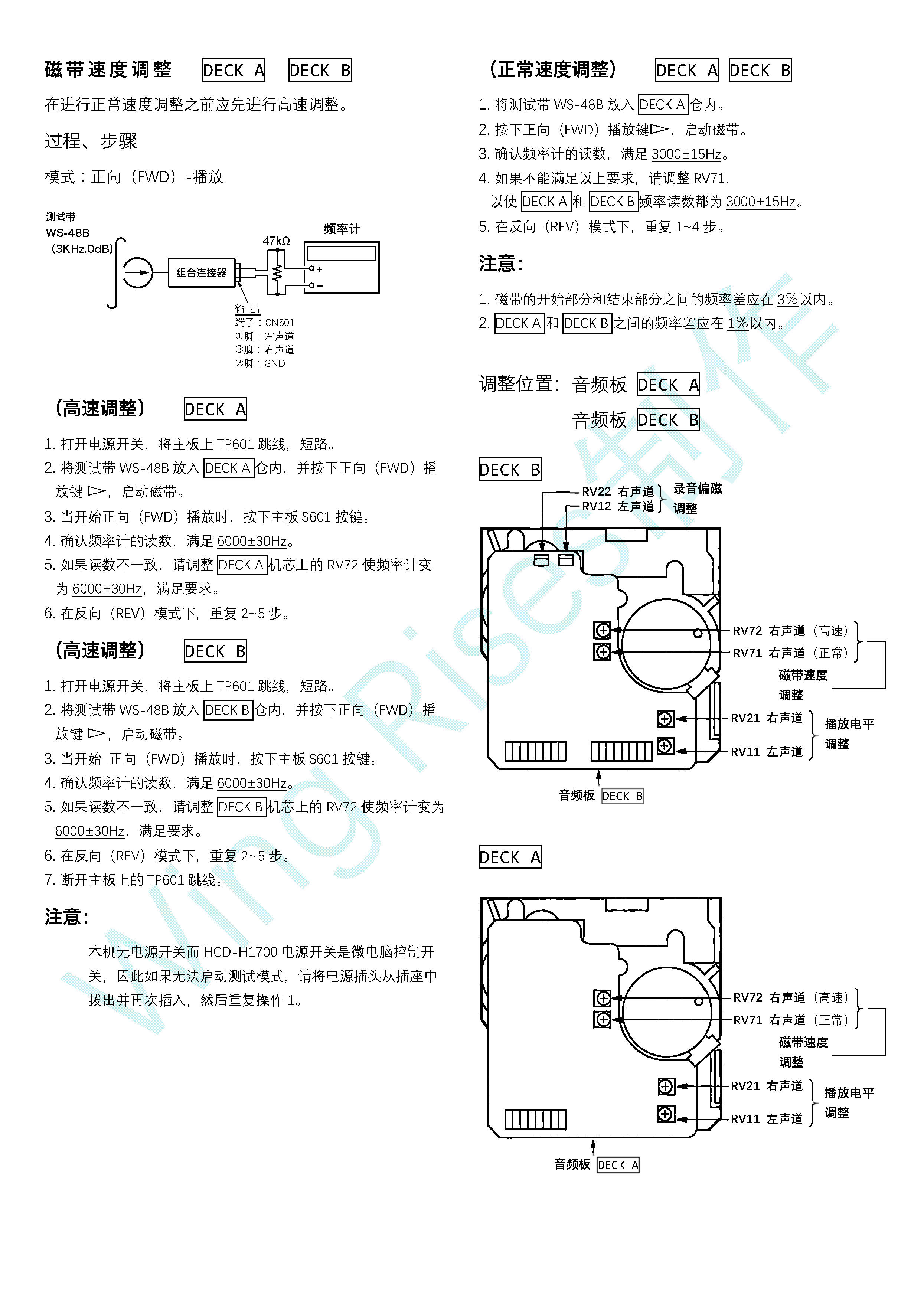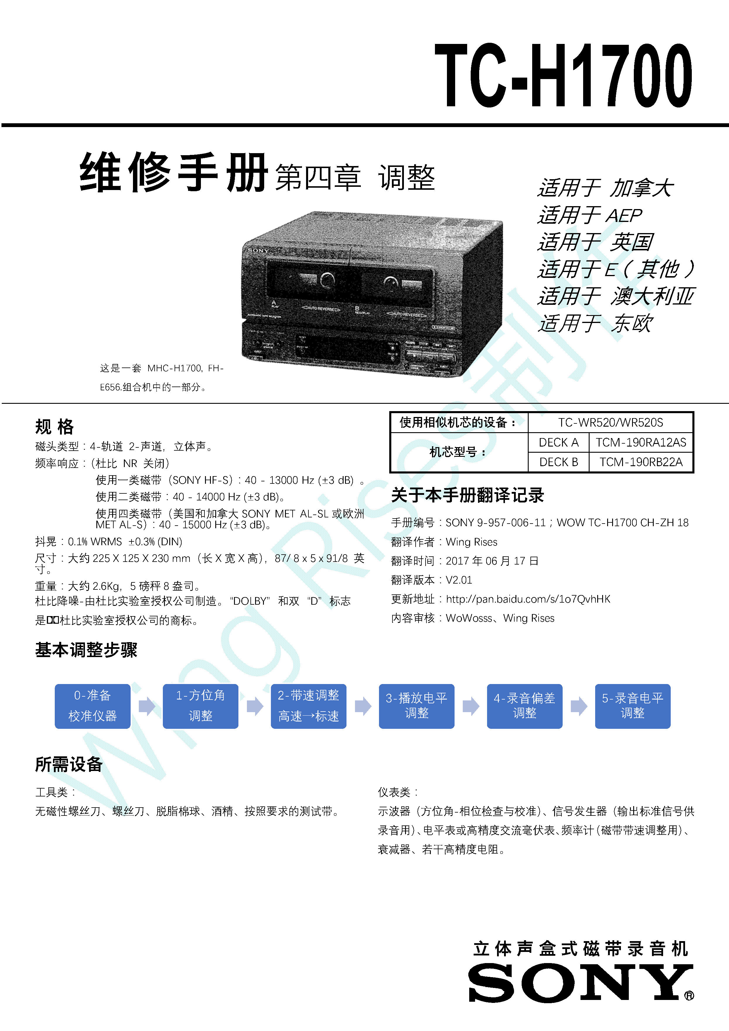 SONY TC-H1700 组合机卡座 维修手册 调整部分 中文翻译 |