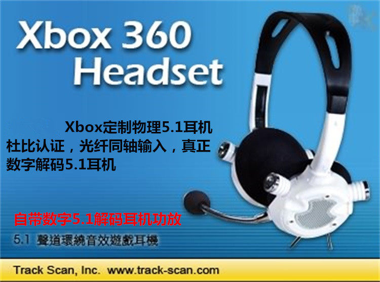 ?商品成份:Xbox 360 5.1聲道環繞音效遊戲耳機、數位解碼盒、可分離式麥克風、光纖纜線