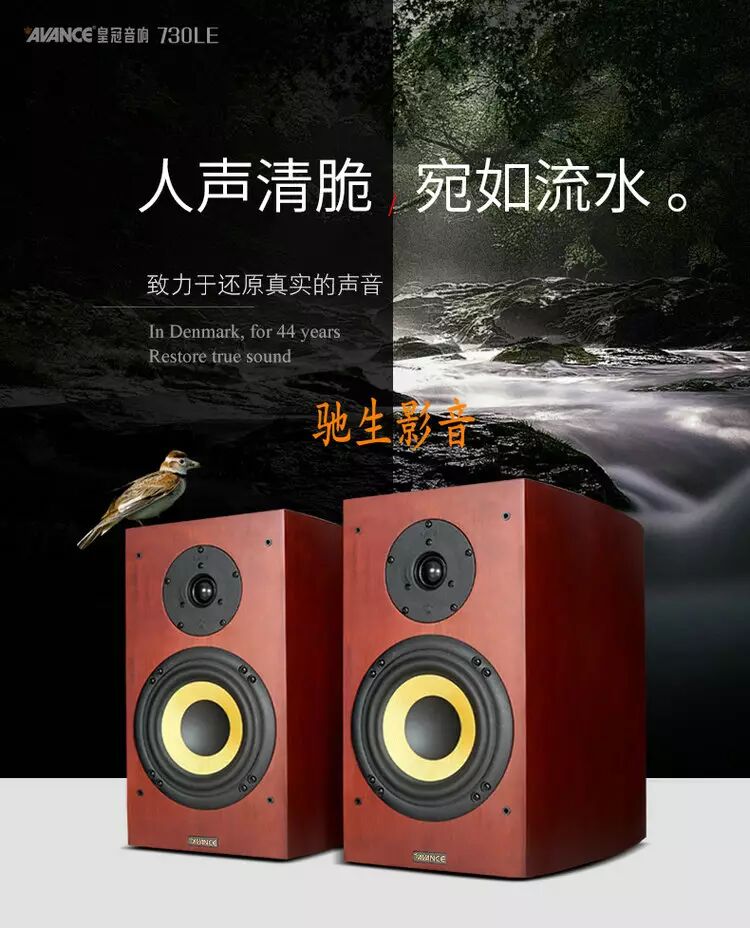 丹麦皇冠AVANCE 730LE书架箱,从发烧产品系列建立之初,一路传承到今天的730LE书架音箱,采用2路2单元的箱体结构,装载一只皇冠定制的丝膜1寸高音单元,丝质振膜更加还原高音的穿透性经过特殊改良后有利于改善超高频的延伸;而中低音采用AVANCE皇冠特有的玻纤音盆双磁钢单元,振膜采用的是高密度复合玻纤材料,这些单元都是avance特别订制的,所以内里结构与表现都要比其他外表相同的同厂量产制品优胜得多。纯净透明,是对730音质音色的最真实写照——高中低频的平衡度非常好,音质极佳,乐器质感逼真,细节巨细无遗,乐器的泛音和空气感非常好,富有能量感和张力。