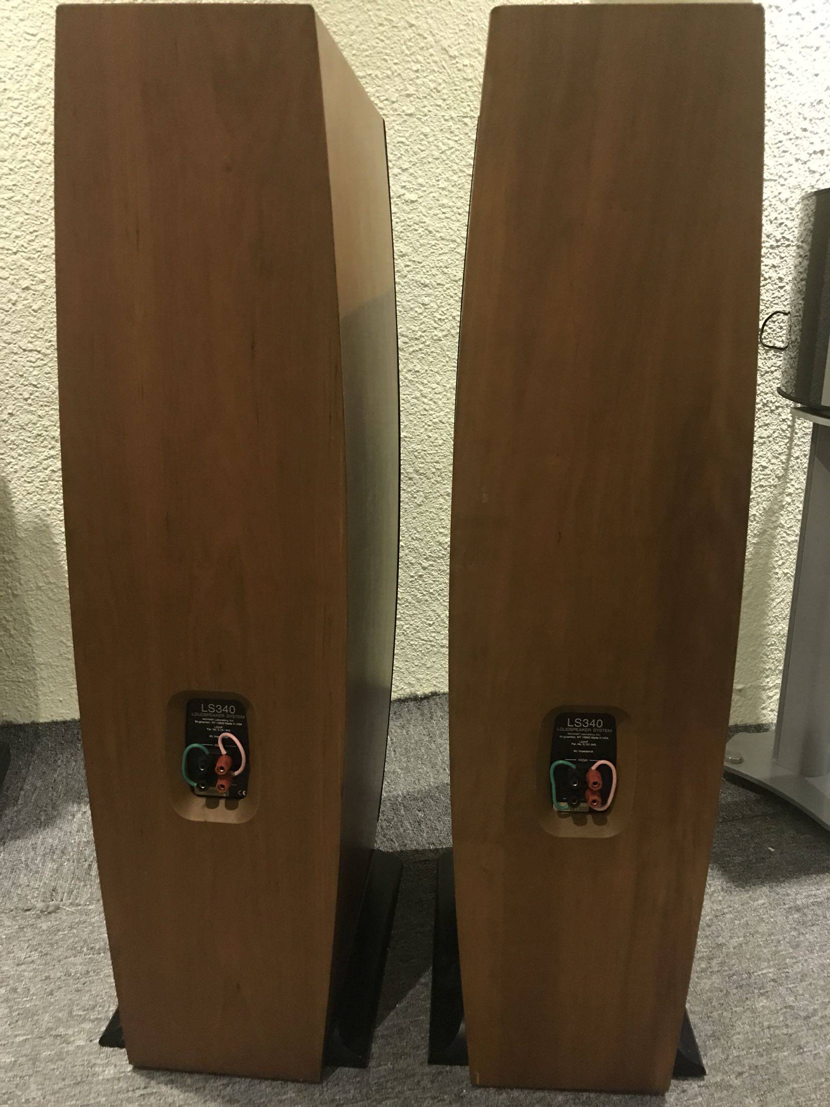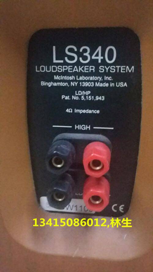 美国 麦景图 McIntosh LS340落地古董发烧音箱,9成新,绝对正常无修理,保证收货满意,13415086012,林泳,一笔生意,一世朋友。                McIntosh麦景图”于1949年弗兰克。麦景图(Frank H.McIntosh)和哥顿。高(Golden J.Gow) 在美国纽约州创立,在成立之初,弗兰克。麦景图先生利用其在军中所得到的有关电声学的知识和经验,从事深远的研究工作,而哥顿。高则以音乐的研究为主,因此麦景图”的音响器材都以高传真,稳定和可靠”而驰名。中文名:麦景图外文名:McIntosh时间:1949地点创立:美国纽约州成长简介四十多年来,麦景图公司可以说是始终保持其显赫形象的少数名牌之一。这是由弗兰克·麦景图和哥顿·高,两人共同经营三十年所建立起来的成果,至今仍巍然屹立。从1997年开始,哥顿继承公司总裁的位置后,继续发扬这个传统,使该公司的伟大形象立于不败之地。麦景图”除了在放大器的研究和制造商获得佳绩之外,在扬声器的设计和制作方面也由不俗的表现。自七十年代首对扬声器面世以至LD/HP(低失真/高性能)低音单元之磁路设计获得专利注册后,其扬声器产品便不断发展,主要分为XR系列LS系列。普及之LS系列,设计概念式以电声学逻辑理论和实际聆听经验结果融合而成,并选用最佳的材料和先进之驱动设计技术,加上长时间在大型之无残音响室内以及标准的测量仪器下研制而成。一般来说LS系列扬声器大多采用二路或三路分音网络设计,其相同位(Linkwitz-Riley)之设计,能使分音频率在传送时达到平滑流畅自然,一气呵成的境界。在高单元方面,LS系列大多采用一只1英寸直径之铝质半球形高音单元,而中音及低音单元之音盆材料皆为经过精心挑选,结合了高硬度,轻质量和特佳之内部阻尼于一身,还有注册专利的LD/HP磁路设计,使其低音在清劲之余仍保持高度传真,音盆周边采用天然橡胶材料,除了长寿耐用外,其活动时之线性幅度亦提高不少,正如高音单元在周边采用聚氯乙烯”外边一样,对其高频之扩散和宽阔之平直的频率响应都有帮助。LS系列中设有三款防磁式设计的扬声器LS310和LS330,LS340,不会对电视机产生干扰。LS340喇叭蔚为壮观,箱体尺寸:宽度260mm,深度440mm,高度1200mm,由四个单元组成,一个4寸高音,一个6.5寸中音,两个8寸低音喇叭。采用了荷兰飞利浦的贝塞尔阵列”专利技术,可以获得理想的相位与频幅特性,获得更接近现场的还原效果。这个阵列,是麦景图高端喇叭的标志,沿用至今。这些单元并非简单的发出同样频率的声音,而是根据位置的高低,与中音与低音单元进行融合,各自负责不同的频率,形成完整的声音。据说,这件型号LS340的麦景图喇叭,是日本著名的STEREOSOUND杂志编辑菅野冲彦使用了超过20年的喇叭,让你得以欣赏到威风凛凛的麦景图之声。麦景图LS340宽度是椭圆形和超长深度箱体设计所赐,这套系统在声音的规模感的表达上具有难以置信的庞大感,整个人都被声海所包围,音色走中性饱满大气的路线,交响乐的控制力一绝。双八寸低音带来低音的绵密而又清晰的波涛,录音中微弱的低音细节清晰再现,这是八寸喇叭乃中等喇叭根本无法做到的。从这个意义上来说,将预算的绝大部分投入到能负担的最贵的喇叭上,是相当值得考虑的。聆听爵士人声,歌手嗓音的质感具有无比真实与直接的魅力,6.5寸中音配合阵列高音对泛音的补充表现,人声栩栩如生,立体展现出感染力 十足的形象,爵士现场的空气感与气氛相当好。乐器与人声定位感很突出,给我独特的现场感,双8寸单元没有任何肥满,动态淋漓,宽松而透明,我越听越感觉沉醉在现场。美国式的大气具有十足的魅力,难以抵抗。吉他拨弦的范音全方位的出色,由于高音柱从上到下,因此低音也非常完整,别忘记大提琴也有高音泛音,因此这样的高音阵列对于音乐重放的频段衔接的自然性有着突出的贡献。虽然由于前端所限,在声音的细腻度,饱满度上我感觉有提高的余地,但声音已经非常惊人,我可以感受到这对麦景图的喇叭具有极大的潜力,在全频段上,这对喇叭几乎做得尽善尽美。感觉听了没多久,一个多小时就过去了,我不得不告辞,但是,这对麦景图喇叭让我见识了阵列高音加上大口径单元组合对于还原大编制古典音乐的强大征服力,让我欣赏到美国麦景图的魅力!