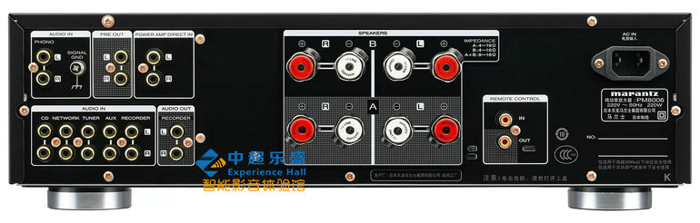PM8006还采用了新的音量控制,以确保声道平衡清晰准确,使用有模拟感觉的音量旋钮通过微处理器控制电子调节,同时提供两组定制Marantz扬声器端子,可进行A/B切换。