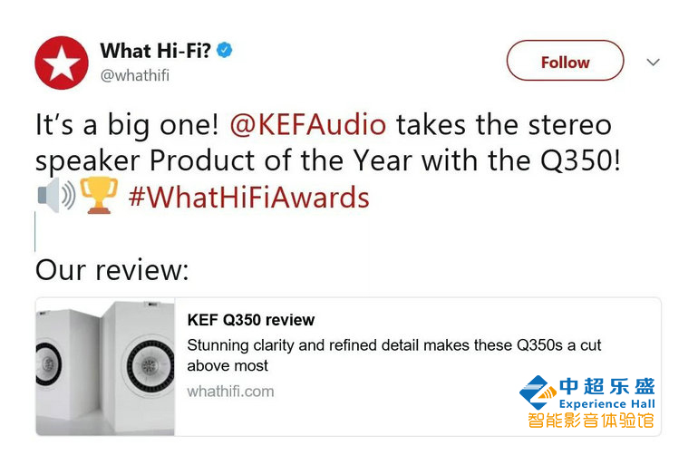 【KEF Q350 书架式扬声器 荣获年度大奖】 Q350: Stereo speaker Product of the year (Q350:年度最佳立体声音箱)
