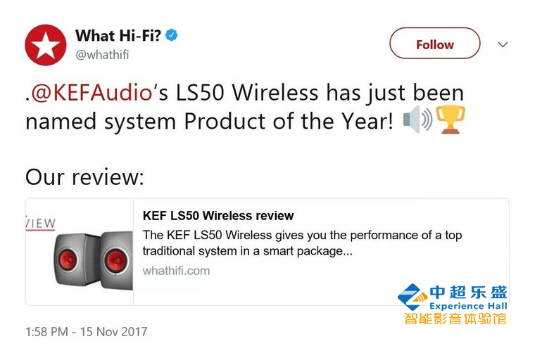 What Hi-Fi在评价LS50 Wireless说到:如果这不是音响的未来,那什么是?这是对LS50 Wireless莫大的肯定和认可。