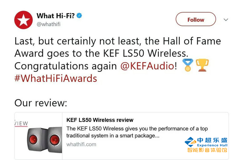 【LS50 Wireless扬声器 荣获名人堂大奖】 LS50 Wireless: Hall of Fame award (LS50 Wireless:名人堂大奖)