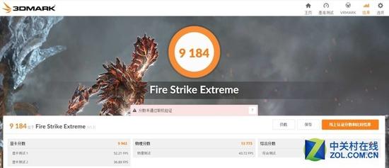 下面是理论性能测试。笔者使用新3DMark的Fire Strike Extreme和Fire Strike模式对这块显卡的图形性能进行测试,主要测试在极限游戏环境和高压游戏环境下的性能表现。 首先是在Fire Strike Extreme模式下,GTX 1080独立显卡在新3DMark的Fire Strike Extreme测试项中获得了高达9184的分数,其中显卡分数为9943,物理分数为13773。