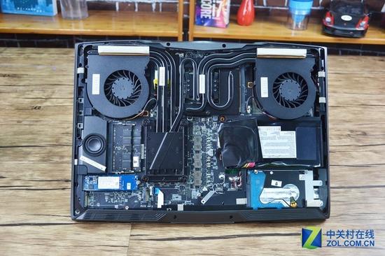 未来人类S6的后盖还是非常容易打开的,只需要将底部的螺丝拧出就可以了。从内部构造来看,这款产品最吸引人的要数散热模组,热管数量已经没有必要数了,实在是太多了。该机散热效果如此优秀,与强大的散热模组有直接关系。