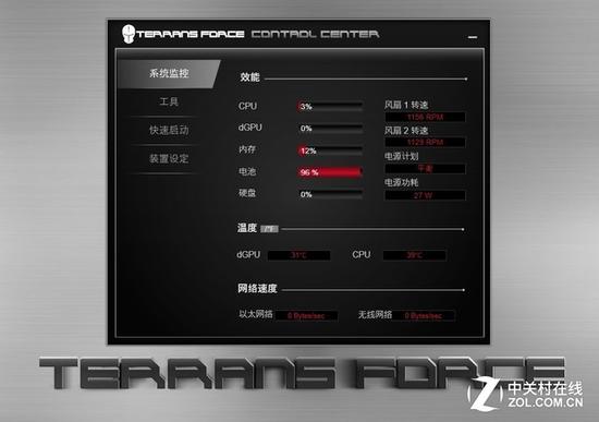 大多数游戏本都存在一个问题,那就是太过于注重硬件,而在软件方面比较贫乏。不过未来人类S6却不一样,在保证非常强的硬件基础上,软件服务方面做得十分出色,下面笔者简单对未来人类S6内置的软件进行简单介绍。 Control Center是未来人类S6内置系统级的监测软件,能够监测到CPU、GPU、内存、电池、硬盘以及网速等诸多基本信息,能够让玩家以最快的速度了解当下电脑的状态。