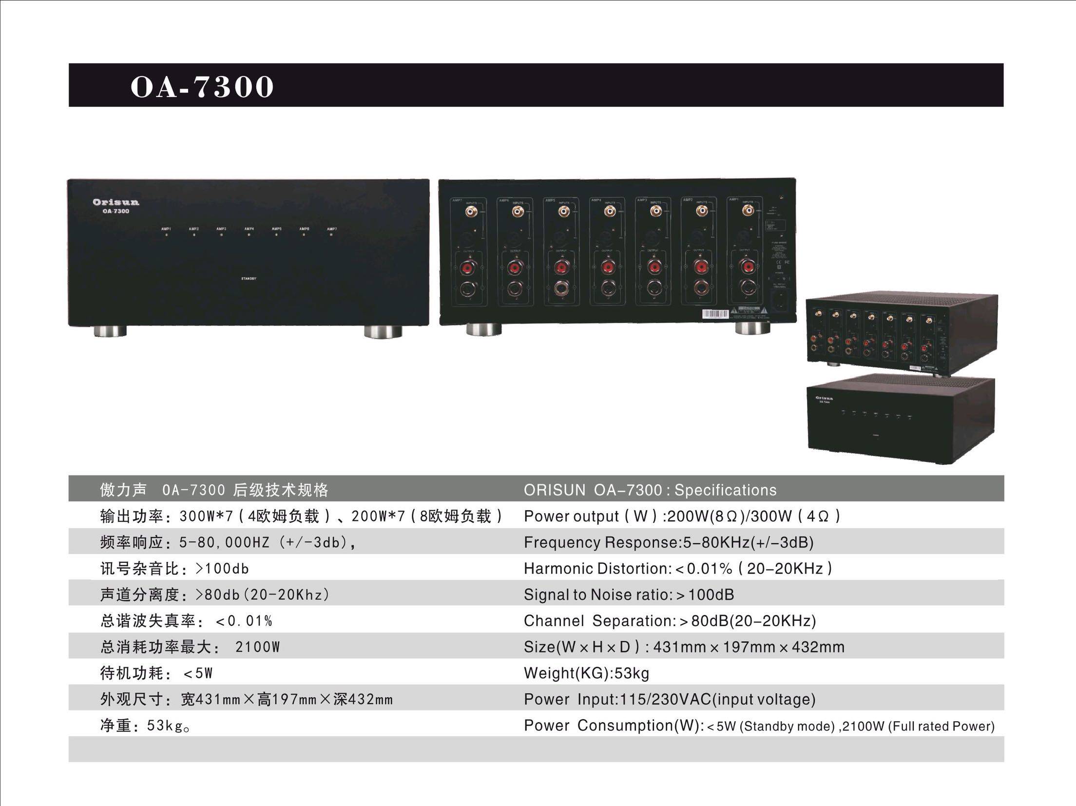 [功放] 美国正品傲力声orisun OA 7300七声道后级功放 |
