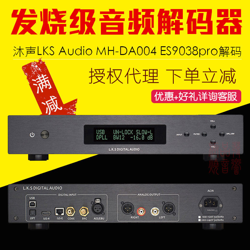 经过长达半年的测试调整,到2017.3月份,沐声终于完成了朂.新款的ES9038pro 解码器-MH-DA004,新的解码器定位为本家的旗舰级。2017新款的旗舰机集沐声近十年来的经验积累,很多高端零部件的搭配使用,如丹麦的jensen电解电容,Crystek飞秒时钟,古河电源插座,Cardas镀铑音频座,为这款新解码器奠定了非常好的声音基础,同时经过多位发烧友的反复试听调校,使得声音非常自然、传真,临场感极佳,细节丰富,極高的清晰度和透明度,声音密度充沛,动态庞大,高低频的两极的延展性非常了得。一改以往ES9018/9028在听感方面的不足,声音素质的全面性达到全...新高度。 MH-DA004提供两个配置版本: 第一种是标配版本,价格是9399元,内部使用的是沐声标配的意大利Amanero USB模块,模块使用普通有源晶振,未配置独立供电,使用时通过USB线连接解码器和电脑后,USB模块从电脑的USB端口进行供电。 第二种是USB升级版本,价格是9999元,升级版改进了两个影响声音的关键位置--电源和时钟,沐声使用两颗昂贵的Crystek CCHD-957超低时基抖动的有源时钟,并单独为USB的工作设计了一只超低噪声的线性电源模块,此电源模块直接由解码器的交流变压器供电,可以极大的优化USB的供电品质,升级版的声音具有高档CDT一样的特质,声场开阔,声音鲜活润泽,饱满,通透,两端延伸極.佳,声音密度极好,声音精致细腻,平衡、自然。未升级的则相对要平实,高频略有毛糙、前突,质感不足,低频阳刚但是层次感欠缺。 对于常使用USB接电脑用的朋友,建议您选购USB升级版本。