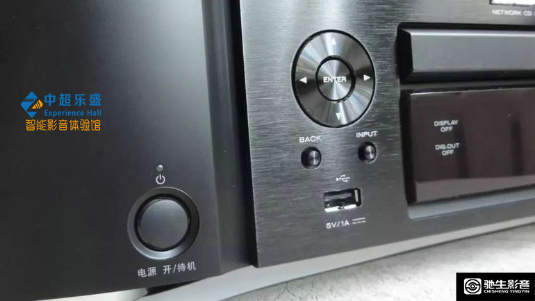 前面板左侧设有USB插口,可使用U盘、移动硬盘播放无损音乐。