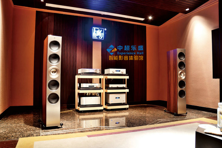 本次试听的是KEF The Reference 5落地箱,“高挑、苗条的身材”是笔者的第一印象。笔者曾在香港开平道的KEF专卖店试听过钢琴烤漆的Reference 5,而回到广州试听的是美国胡桃木色,两个颜色都非常的高贵,同时还有亮泽玫瑰木、蓝冰白、黑铝古铜色可供选择。前障板选用意大利的高级材料,采用独特的超强铝合金层和树脂复合材料在极端温度下,强压成型。同时,前面板的侧边经过精密的立体切割处理,非常顺滑。 内箱也经过巧妙的设计,采用了西班牙生产的吸音物料,大大减少了驻波和箱体反射引起的谐振。配合业界首创的可调倒相管,配套有两种长度的倒相管供用户调声,同时应用流体动力学,防止出现喘气流,低频有了更进一步的提升。