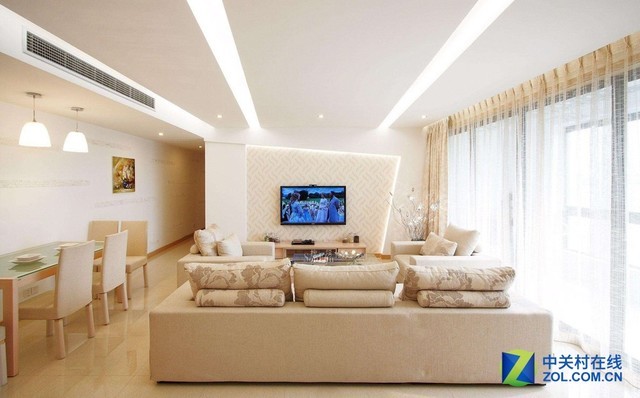 ◆美观度 家用中央空调采用嵌入式的安装方式,可以很好的与整体家居装修环境融为一体,出风口的类型和样式也可以根据家居环境进行定制,安装后的整体效果非常美观。安装完毕后,室内机全部隐藏在各个房间的吊顶之中,这样一来也进一步节省了室内空间。另外,比起分体式空调相对较为固定的安装位置,中央空调内机安装位则更为自由灵活一些,可以根据自己的需要安装在房间的任何位置。