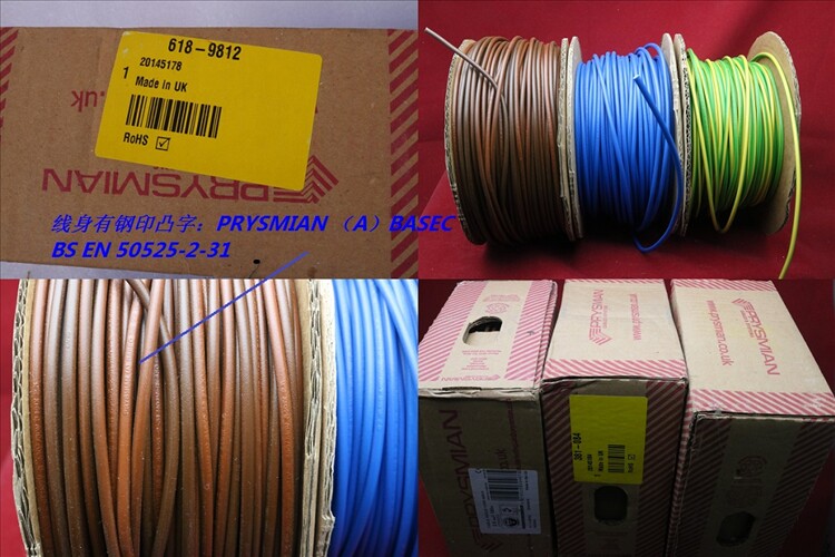 线身有钢印凸字:PRYSMIAN (A)BASEC BS EN 50525-2-31