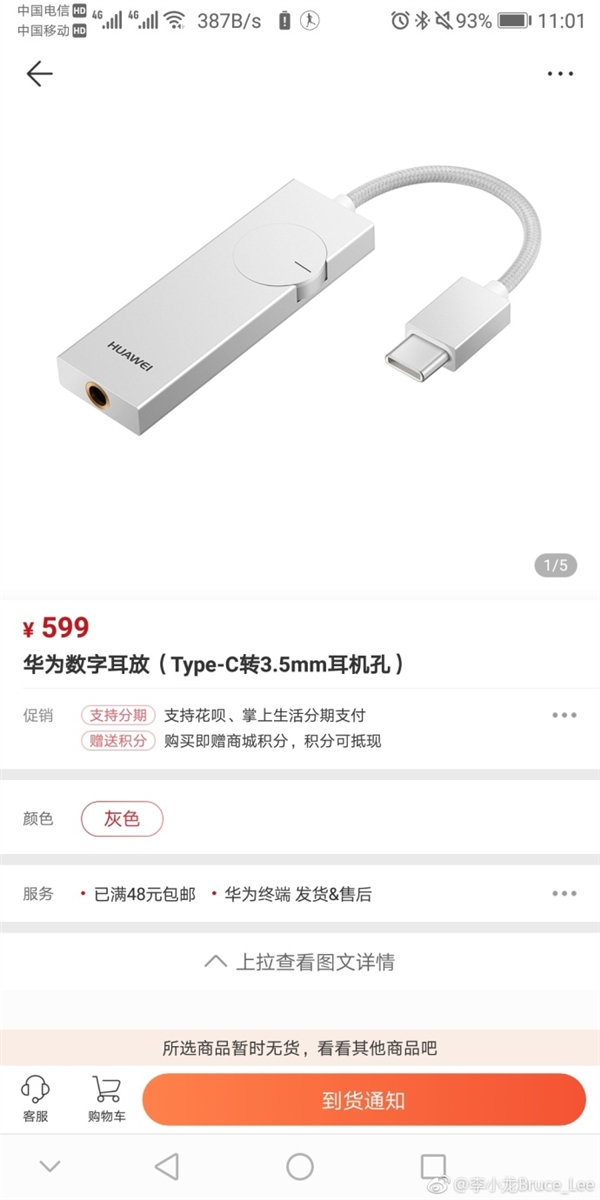 [耳放] 华为Type-C转3.5mm数字耳放开卖:599元 |