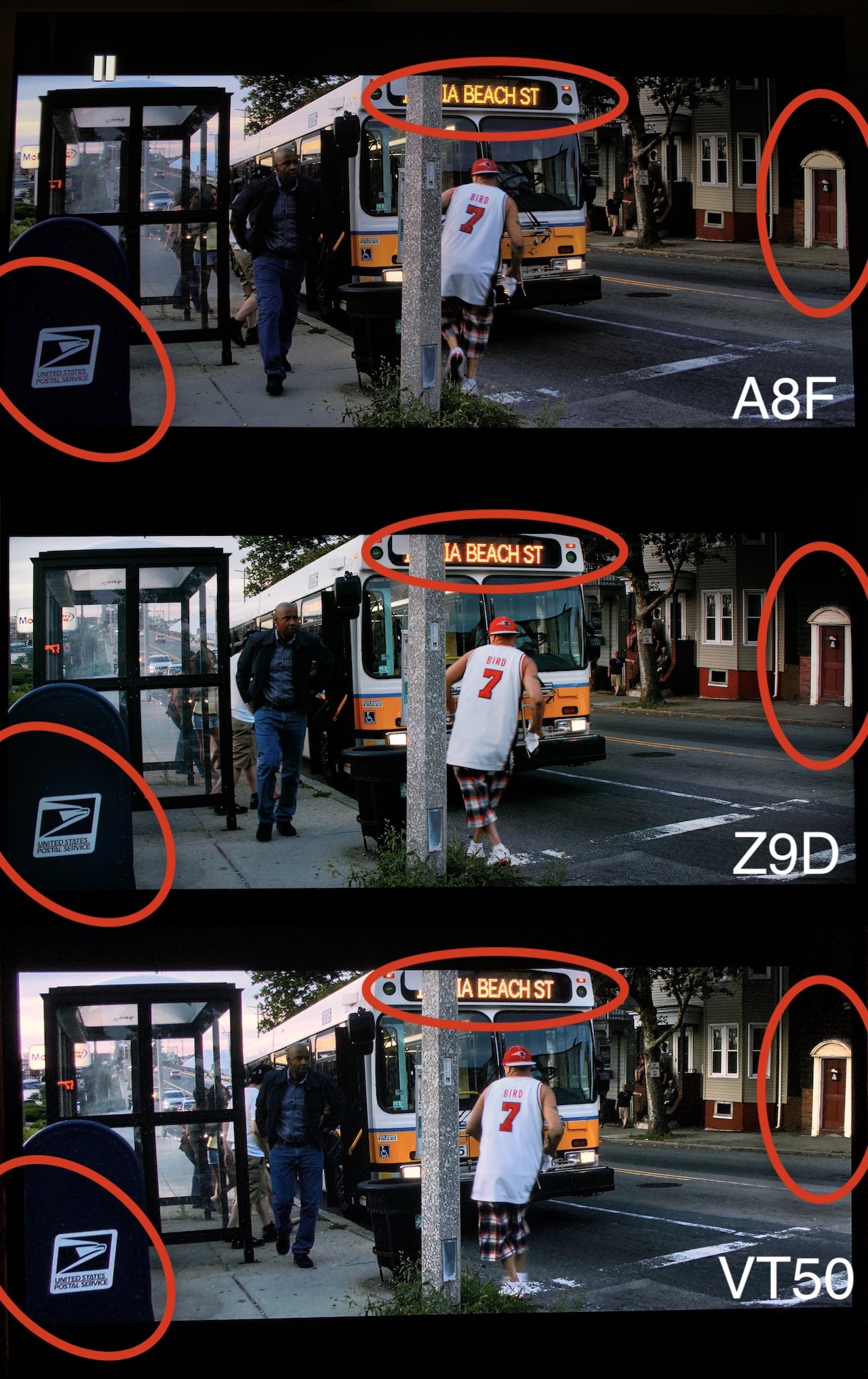 这张屏射说实话比2015的好很多了。感觉红多了点,见汽车的黄色部分。对比度高了点。这些问题估计和屏射有关,屏射要到达视频的70%的准确度已经很难了,更不用说拍p3和bt2020