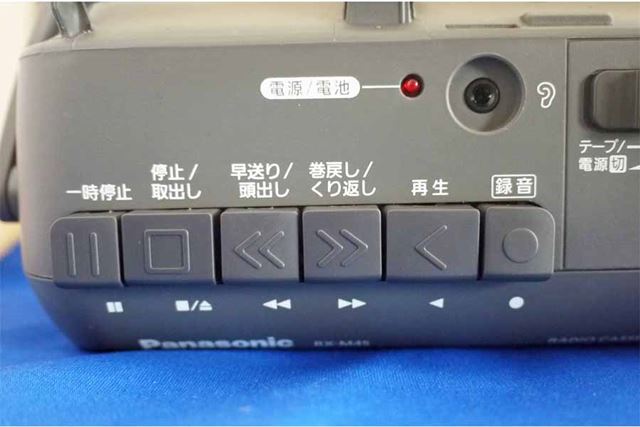 とにかくカセットの操作ボタンがむちゃくちゃ懐かしいです。ギュッとボタンを押し込む操作が、タッチパネルに慣れた我々の脳裏に何か、忘れがたいものを呼び起こしてくれるような感覚になりますよ。もちろん、録音するときは、録音ボタンと再生ボタンの同時押しです(本製品は録音ボタンを押すと、一緒に再生ボタンも押し込まれます)。昔は、「あっ録音しなきゃ」ってときに一緒に押し込めなくて失敗した経験がよみがえりました。
