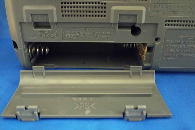 本体背面です。付属のACコードで電源を取るほか、単1形乾電池×4本に対応しています