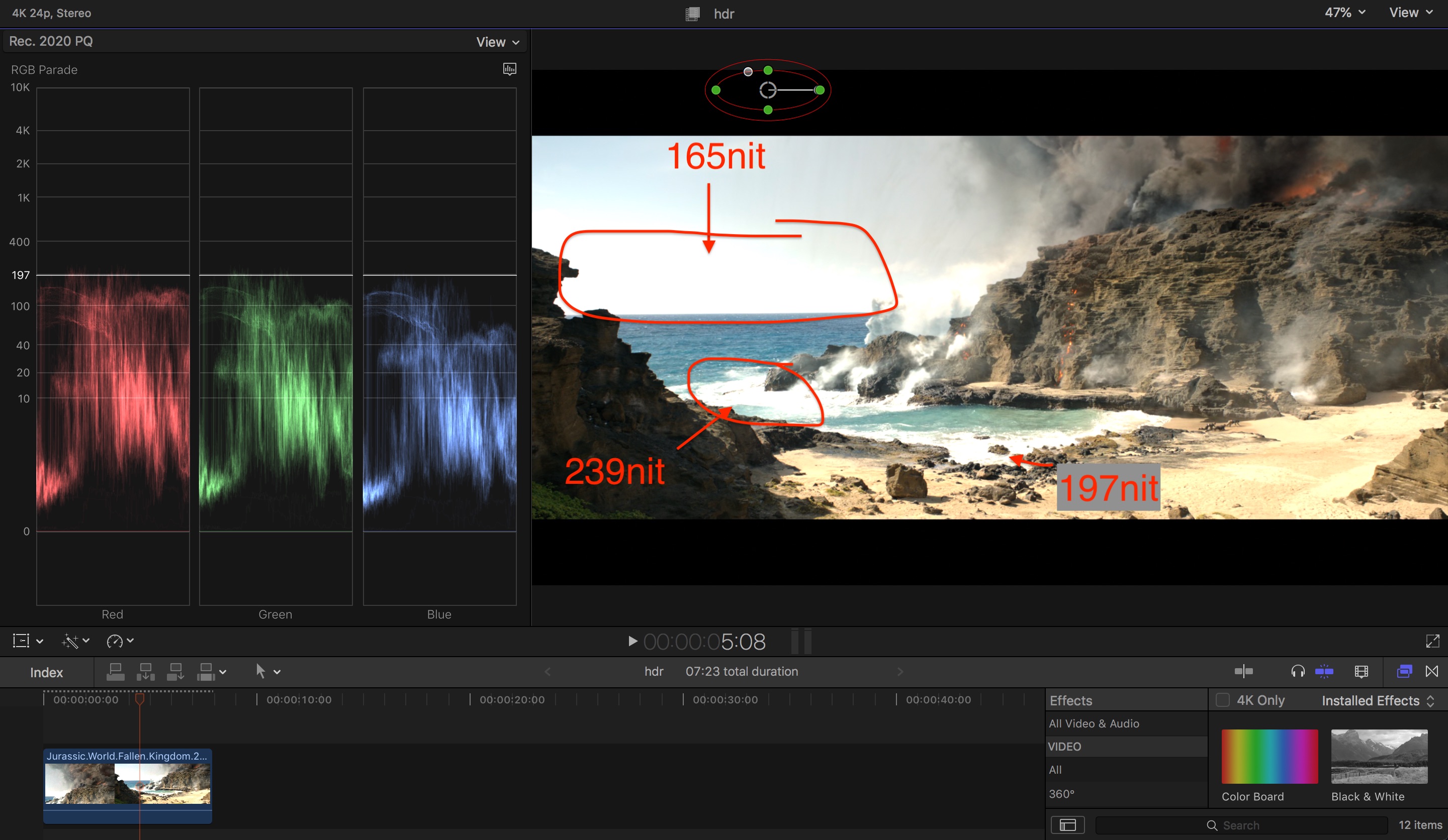 二、既然hdr是绝对亮度值,所以该类机器播放hdr视频时就是根据视频内含的pq曲线来展示亮度的,超出机器可显示范围的统统cut(所以要追求更高亮度的机器,因为能显示更多信息)。