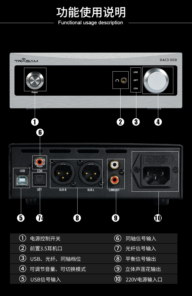trasam/全想 dac3 解码器 发烧光纤同轴 HIFI DAC解码器耳放