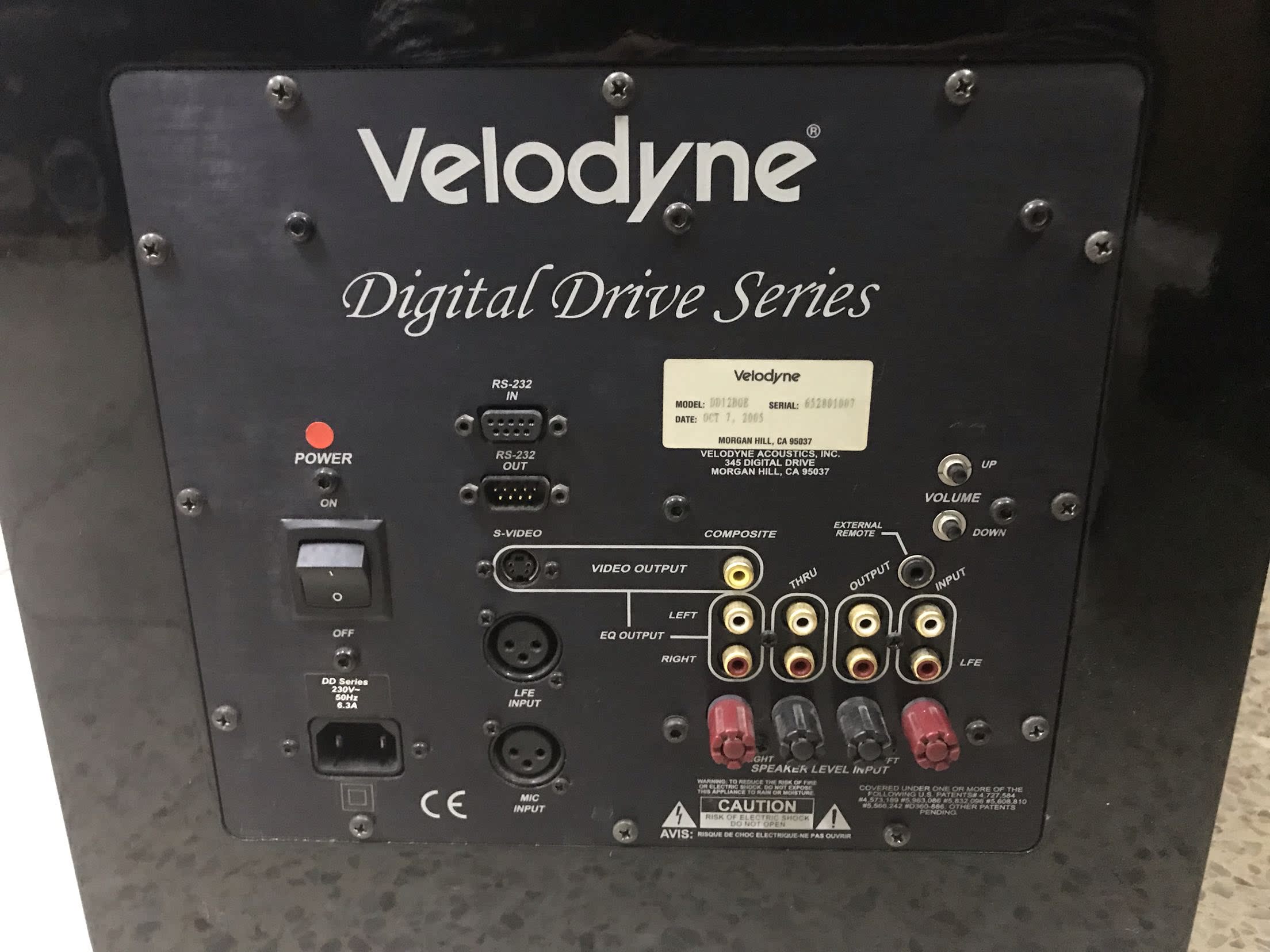 美国威力登Velodyne DD10和DD12超重低音炮,有意者联系13415086012,林泳,一笔生意,一世朋友。Digital Drive Plus是Velodyne的旗舰系列,产品定位与设计当然是以再-高声音表现为目标,因此系列的4款产品中,再-小的就是从10寸起跳,另外还有12寸、15寸与再-大的18寸,DDP的外观远看像是黑色钢琴烤漆涂装,但其实是黑檀木实木贴皮再加高质量钢烤处理,优异质感可比拟高-级家具。除了黑檀木,原厂还提供樱桃木纹的选择。DDP 不愧为丁极品牌的丁级产品,光从外表就可感受到其精细的做工,前宽厚窄两侧略带弧形的箱体造型,破除了超低音只能是笨重木头箱子的宿命,DDP的功能非常强大,某些操作必须通过面板进行,此时必须卸下防尘网罩,可以看到上方有一排插孔与旋钮,从再左边开始是Mini USB插孔,用于连接计算机,以方便进行系统的自动调校功能。接着是麦克风输入孔,这就像是环绕放大器,在调校时必须借助麦克风拾取测试音,不过DDP随附的麦克风可是高-级太多了,看起来就是专业产品,而且连麦克风架都帮你准备好了。DDP提供3种信号输入方式,包括XLR平衡输入、Line输入(RCA端子),以及Speaker信号输入(从放大器的喇叭线连接)。输入有Input、Thru Out,与High-Pass Output三种插孔,另外RS232也有in和out。为何如此复杂?因为DD+系列再厉害的地方是可以串接多部超低音,并且一起量测,一起进行低频管理。DDP的单元使用玻璃纤维加Rohacell泡沫材质组成的三明治式振膜,配上双层弹波与超宽、超厚实的悬边,赋予超长冲程的稳固支撑。音圈部分使用口径达到75mm的铝质音圈筒,6层音圈可提供再强大的磁驱动力,而且4层绕在音圈筒外部,有2层却绕在音圈筒内,这是为了提高散热效果,防止剧烈运动时音圈过热的问题。功放方面,DD由一部连续输出功率高达1,250W的D类放大器驱动,瞬间功率更可达3,000W。由于能源使用效率在95%以上,因此工作时并不会产生高热。重要的是,其内含Velodyne的看家本领数字伺服控制系统”(Digital High-gain Servo Control)系统,每秒钟以将近16,000次的频率监测并控制单元动作,让失真可以维持在0.5%以下,圈球领先。所属品牌Velodyne 威力登(美国)器材规格产品型号 DD-12频率响应 17Hz-120Hz +/-3dB最高交叉 80Hz 6dB最低交叉 15Hz-199Hz(6/12/18/24/30/36/48 dB)亚音速滤波 15Hz-35Hz(6/12/18/24/30/36/48 dB)定相 0度-180度放大器功率 1250W尺寸" 14.5"×14"×15.5"重量(kg) 30kg所属品牌Velodyne 威力登(美国)产品型号DD-10灵敏度(2.83V/1m)86dB频率响应18Hz-120Hz +/-3dB最高交叉80Hz 6dB最低交叉15Hz-199Hz(6/12/18/24/30/36/48 dB亚音速滤波15Hz-35Hz(6/12/18/24/30/36/48 dB)定相0度-180度放大器功率1250W尺寸300 x 300 x 340mm重量(kg):26KG