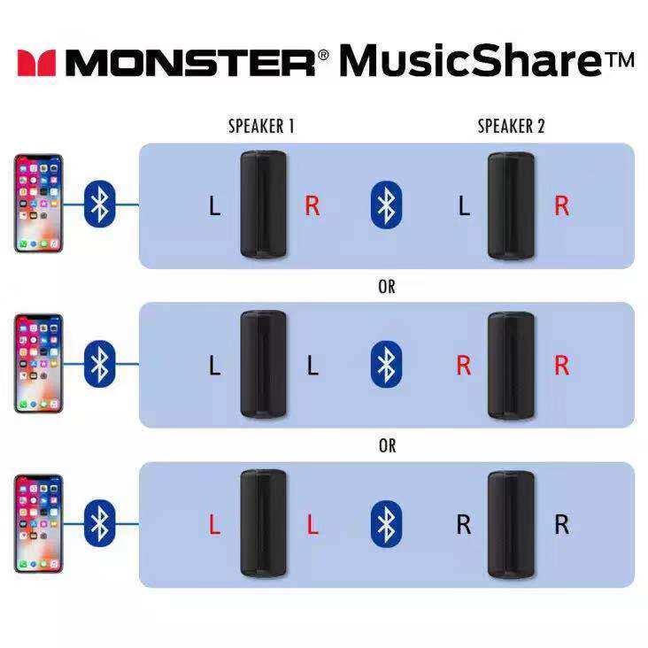 MONSTER S300支持两只配对成立体声!平时和媳妇一人用一个,汇合了就整成立体声。并且两只一起购买就带外面那个保护原箱!出厂就是两个一箱。一买就一对,没毛病!