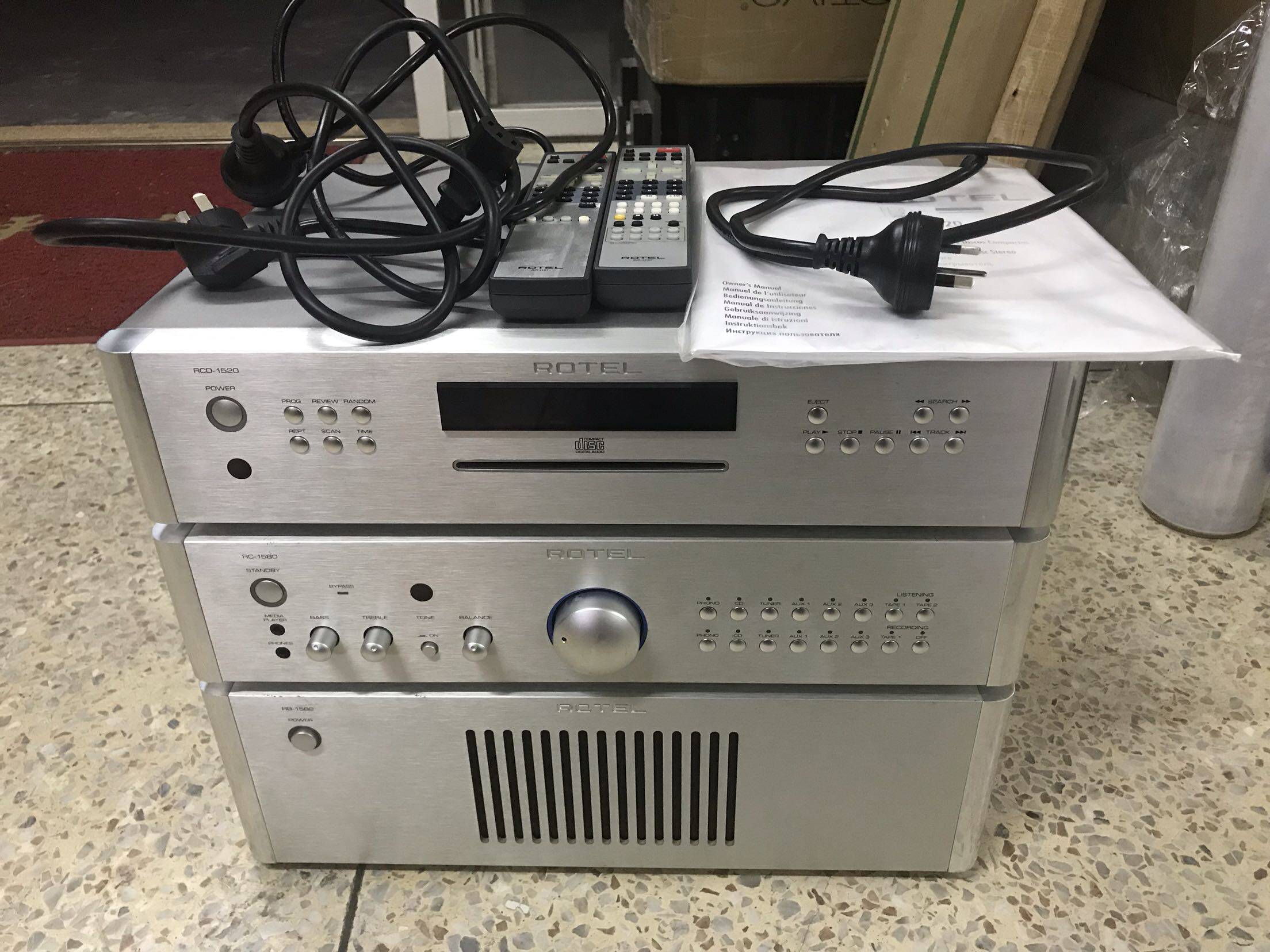 原装英国乐得/路遥/ROTEL RCD1520+RC-1580前级+RB-1582后级 HIFI发烧一套进口音响。有意者联系13415086012,林泳,一笔生意,一世朋友。 RCD-1520 Rotel享有领先的信誉与我们的CD播放机设计自1990年,明显地标RCD-855由评论家刘易斯Lipnick Stereophile杂志,从电力7号为偷的世纪,现在!”RCD-1520发布,我们已经产生了一个CD播放机使一个新标准的二十一世纪,充分利用了巨大的财富,现在可在音乐光盘。这个RCD-1520采用分段式电源变压器,与一个大环减小电力供应”的凹陷,减少哼排放量。”所有整流器、电压调节元件、六氯环已烷low-ESR存储电容是精挑细选,不仅为紧公差,但是在特定的,因为他们的声音质量。模拟和数字电路进行这种仔细的审查。对于这个数字领域里,我们已经厘清这高超的父母对先进的数字过滤和DAC相连D / A转换、毛刺布朗低失真凤凰社放大器。这个CD运输是一种高性能槽加载机制。结果是一个CD播放机,仍将会是你的参考音响系统的一部分。 RC-1580前级+RB-1582后级 (英国翻译) 详细来源:日本/英国 重量:10公斤/18公斤 尺寸:(WxHxD)431x99x337mm 431x140x406mm 特征:前置放大器 输入:黑胶唱机输入口,平衡输入口,音讯输入口,音乐播放器(迷你输入口) 双前置放大器输出,耳机输出 功率放大器:双扬声器终端切换 功率:每声道8欧200瓦 欧洲Rotel DETAILS Origin: Japan/English Weight: 10kg/18kg Dimensions: (WxHxD) 431x99x337mm 431x140x406mm Features: Preamp: Inputs: Phono (MM/MC) Seven line-level (unbalanced) Music player (front-mounted mini-jack) Outputs: two record outputs Twin preamp outputs Headphone output Power amp: single unbalanced input Twin-speaker terminals (not switched) Nominal output: 200 watts Distributor: Rotel Europe