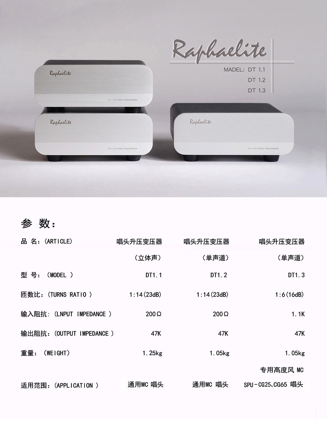 2019年6月,拉菲尔Raphaelite又一力作——DT系列唱头升压变压器正式生产。这是三款价格不贵、声音均衡、解析力很高的MC唱头升压变压器(俗称“升压牛”)。