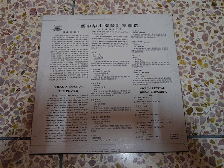 [碟片] LP黑胶 : 盛中华《小提琴独奏曲选》周士瑜 钢琴伴奏,中唱出品,95新(无划痕) |