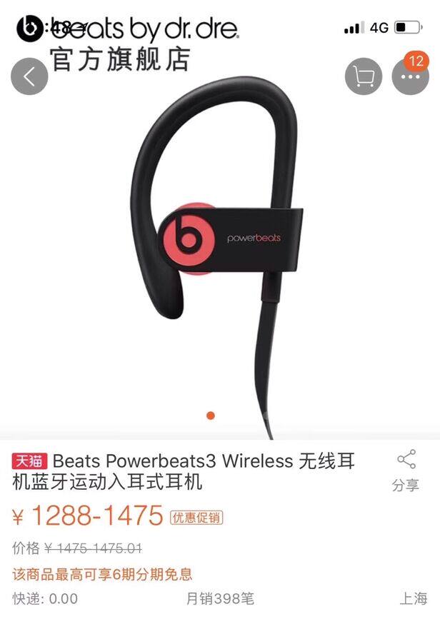 Beats Powerbeats3 Wireless 蓝牙运动耳机! 【原价1498元】Beats Powerbeats3无线蓝牙耳机 PB3.0线控带麦防水汗运动耳机!