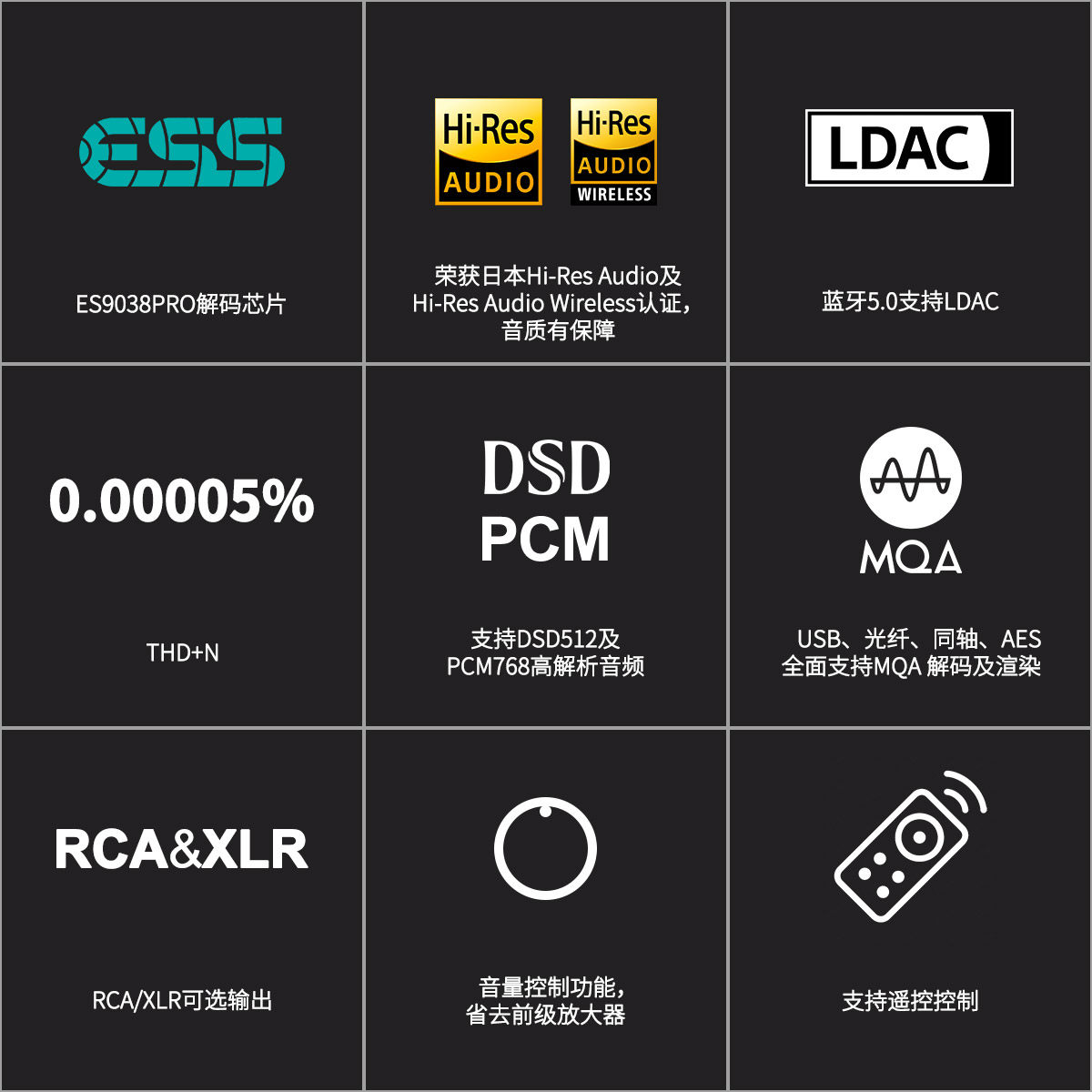 [碟机/播放器] 【新品优惠】拓品D90se无损数字音频解码器ES9038Pro芯片USB DAC前级DSD512蓝牙5.0 |