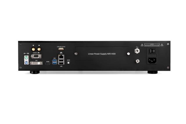 这款产品叫D1, 整机机内电源线均采用定制5N及以上高纯铜线,Hi-END的电源系统,安静的无风扇设计,独立的纯音频USB输出. 1000Mbps, AC WIFI, USB3.0 *2, USB2.0*2, SATA3.0 *4 强大的整机散热余量几乎无所不能, 哪怕最大压力,整机都完全可以接受. 10倍级的电源余量,强大的散热,使得CPU可以无限睿频,远超消费同CPU体验水平,加上定制的企业音频正版操作系统, 整机非常流畅,响应快速.