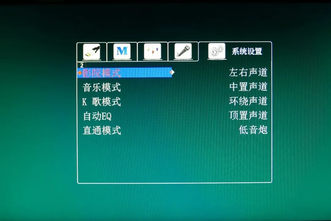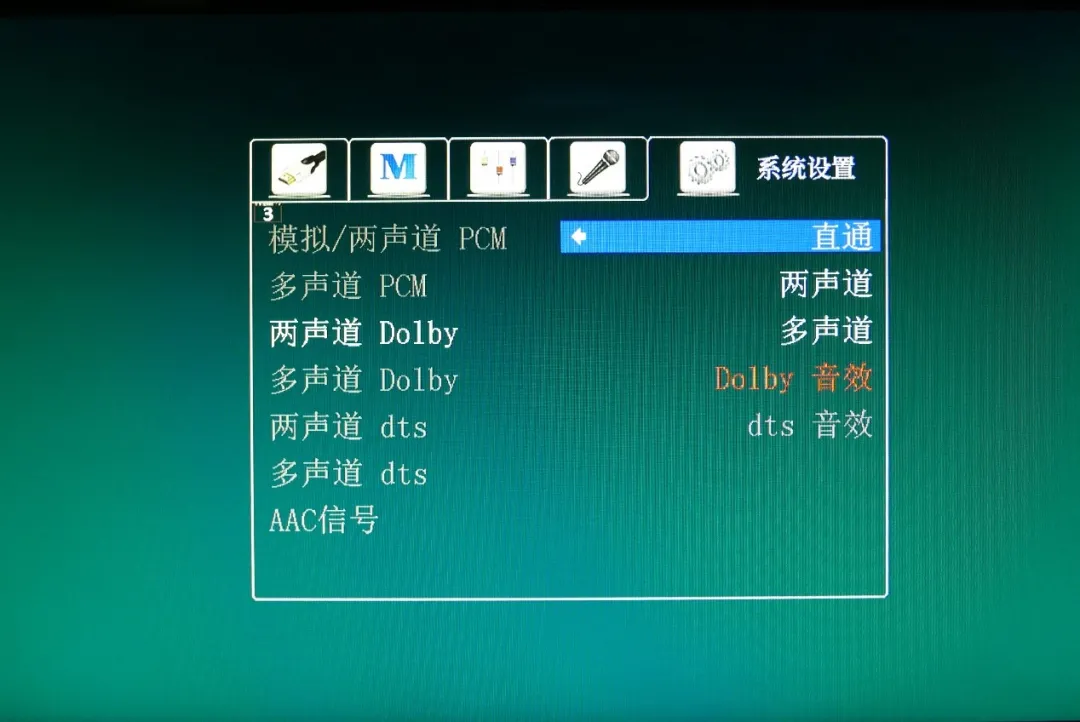 内置的音频模式上提供了7种信号输入选择,包括模拟两声道/PCM、多声道PCM、两声道Dolby多声道Dolby、两声道DTS 、多声道DTS等。使用这个功能,我们可以将一些影片中的格式比较低的音轨,比如两声道的Dolby Digitial 2.0的解说音轨,提升成多声道的Dolby Digitial 5.0模式播放。注意音频模式功能与主界面的模式选择功能是有所区别的,模式选择是对当前正在播放内容的信号进行设置,在关闭记忆选择时重启设备会恢复默认(开启记忆选项后可保持最后一次的设置)。而音频模式功能里,则是针对每一种输入信号格式进行直通、上混、或者下混配置。注意这个设置不像天马的功放是自动完成的,需要手动配置操作上比较繁琐。而菜单这里标注的Dolby音效和DTS音效,对应的为Dolby 全景声和DTS-X。