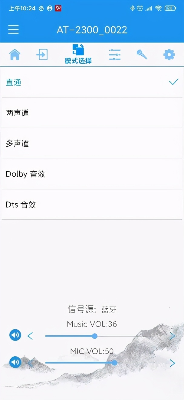 上手一段时间,感觉2300的遥控器布局上比较合理,很多功能都可以一键直达,中文的按键字体对国内用户也更友好。除此外天逸还开发配套的手机APP,使用这个APP可以完成除过EQ设置之外所有功能操作。 不过这个APP并不像其他厂商使用WIFI方式连接而是蓝牙连接技术,所以第一次连接时手机和功放要进行蓝牙配对。启动APP后首页会显示你手机上已安装的流媒体音乐APP,点击后就会跳转相应的APP,你可以通过蓝牙推送这些音乐软件的内容推送到功放上。APP整体操作体验还是不错的,只是使用范围会受到蓝牙技术的限制,不过相对于面板按钮和遥控器操作的确方便了很多