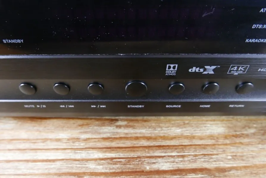 首先这台机器单从重量上达就到了15.5Kg,用料可见一斑。外观上也很有自己的风格,前面板没有使用日系常用的盖板设计,按钮呈一字式对称排列。可以看到前端接口除过一个USB口,最左侧还有两个麦克风插口,主要是为卡拉OK功能设计的。在HD199论坛上经常能看到发烧友布置的影音室,会安装K歌系统和专业舞台音箱。这或许说明K歌也是国内影音爱好者的一大广泛需求,所以此次天逸也是考虑到了这点。在硬件上舍弃大多数功放自带的调频模块,而加入卡拉OK内置效果器。机器前面板并没有设置HDMI和测量麦克风口,对于经常调试设备的用户来说略有不便。另外两个音量旋钮的设计与我之前接触的大多数机器不同,左旋钮管理麦克风音量,而右旋钮除主音量外在还有菜单和确认的功能。