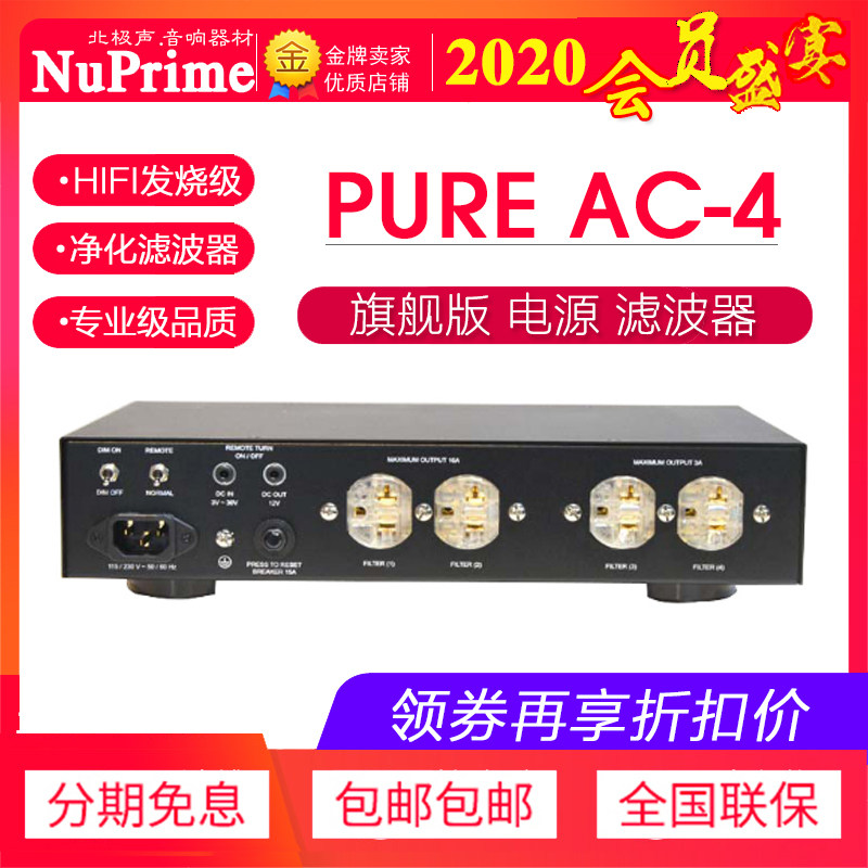 它配上4個FURUTECH FPX鍍金AC插座,具有觸發輸入和輸出,以及用於電流保護的斷路器。我們的大多數音頻設備與其他電器共享家用交流電源,如冰箱,洗衣機,空調和LED燈等等。 家用電器通過AC電源網絡發出電噪聲。 對於入門級消費音響系統來說這不是問題,但在我們SNR> 90db且小於0.1%THD + N的優化高端系統中,這是需要特別關注的。 Pure AC-4可改善您的音響系統的音場和分辨率,使您可以聽到更多音樂細節和諧音。 大多數經濟型的交流濾波設備可以隔離噪聲,但同時也壓縮了交流電源提供的能量。這是由於簡單濾波器設計的物理特性,引致低音隔離和動態損失。 而高端電源處理設備採用精密設計,沒有副作用亦可實現出色的噪音過濾,但成本遠遠超過Pure AC-4的價格。 此外,高功率放大器和小信號設備需要非常不同的AC濾波設計,而入門級AC濾波器未針對這方面進行優化。 PURE AC-4內部有兩套過濾器,可滿足目標應用的需求:1)小信號敏感設備,如前置放大器、DAC及播放機便使用兩個電流範圍為3A至8A輸出的插座。 功能強大的7階LC濾波器電路(使用7個高功率電感器,電容器)具有最大1000倍的隔離性能,專為非常容易受到噪聲干擾的小信號器材而設計。 功率放大器,可使用兩個電流範圍為10A至15A輸出插座。 具有10至50倍隔離度的5階LC濾波器,可提供最大27A的電流。 電感器採用1.6mm厚的銅線纏繞,以實現高電流流動。 特點FURUTECH(古河) FPX高級電鍍24k金AC插座.FPX系列採用插針式結構,確保增加接觸面積和穩定傳輸。 •交流顯示,同時顯示電壓,電流和功率。顯示屏可以關閉。 如果需要4個以上插座,建議用戶多購另一個Pure AC-4設備。 產品規格 •輸入:100 V至240 VAC(50至60 Hz) •斷路器:15 A. •輸出:10 A x 2, 3A x 2 •觸發輸入:DC 3 V至30 V 2 mA •觸發輸出:DC 12 V 50 mA 重量3250克 尺寸330 x 253 x 74毫米 顏色黑色,銀色 ------------------------------以上是官方网站资料翻译---------------------------------------- 开发背景: NuPrime在设计旗舰解码器EVO DAC时,在电源滤波部分验证了好几种线路,花费了不少时间、金钱,就考虑推出独立的电源产品,将它与NuPrime已有的9系列、10系列解码器、功放产品整合,进一步提升本就已经很高的性价比,因此才诞生了Pure AC-4。 已经拥有新派DAC-9/STA-9或者DAC-10H/ST-10(M)的用家,加上一台Pure AC-4处理器,就有了接近 EVO DAC及 EVO ONE 旗舰“进化”系列的电源性能。当然,其它品牌的音响器材,也可以通过AC-4来降低电源噪音、提升音效!