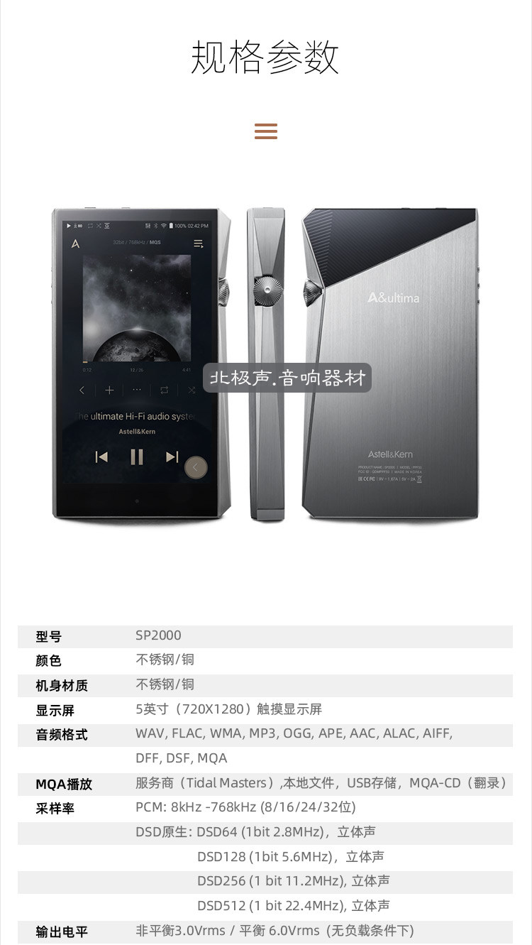 [碟机/播放器] 【优惠大促】Iriver/艾利和 SP2000黑钢限量版AK高清HIFI音频播放器无损发烧级 |