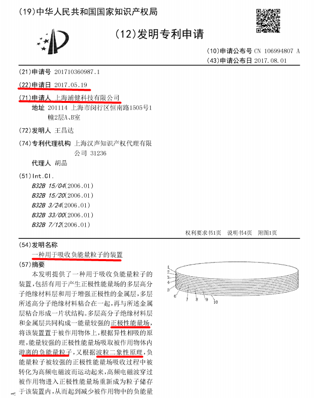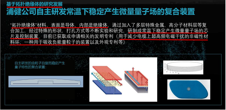 二、史上最牛“量子技术”看看下面的专利,厉害到爆有没有? 看看公司官网的资料: 看到这个,搞拓扑绝缘体的大牛们要笑哭在厕所了!!! 偶也不评论了! 就看看这几个专利: (一)用于减少电缆上超高频电磁干扰的非磁性材料环 这个专利是2012年由上海捷乾节能技术有限公司申请的,发明人高洁(浦健公司股东之一,但认缴资金为零);