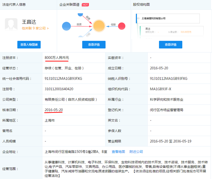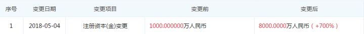 从上图可以看到,该公司注册于2016年五月。注册资金8000万元。实际上,这是刚刚在2018年五月份修改的: