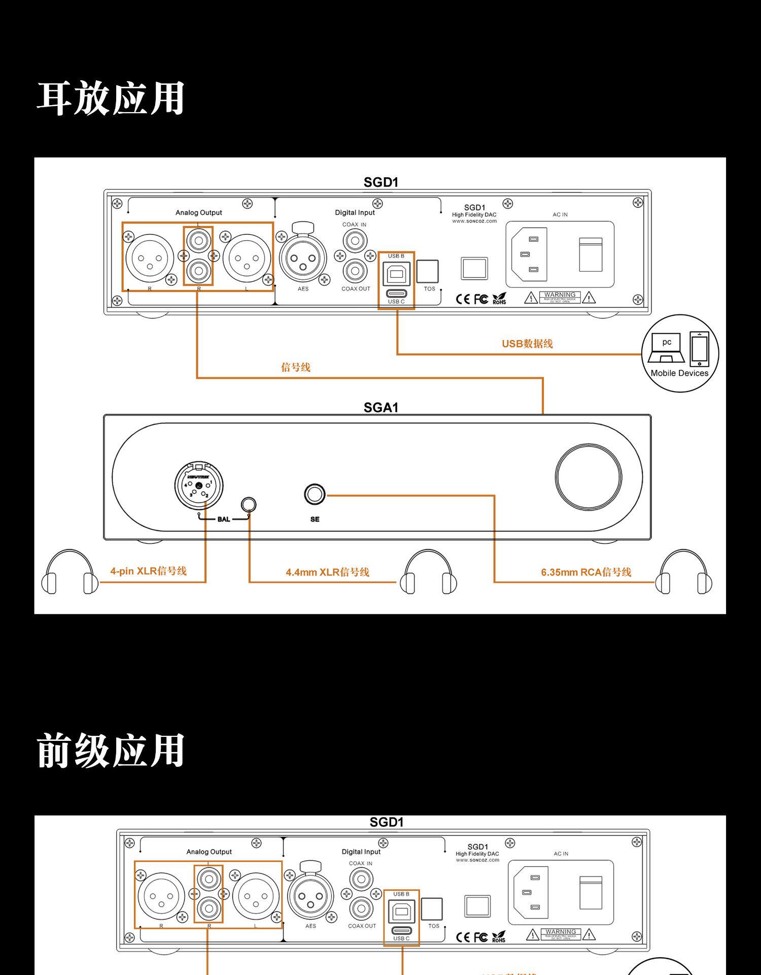 [碟机/播放器] 【新品优惠】SONCOZ松果SGA1/SGD1解码器全平衡HiFi台式耳放前级一体机4芯卡侬平衡XLR |