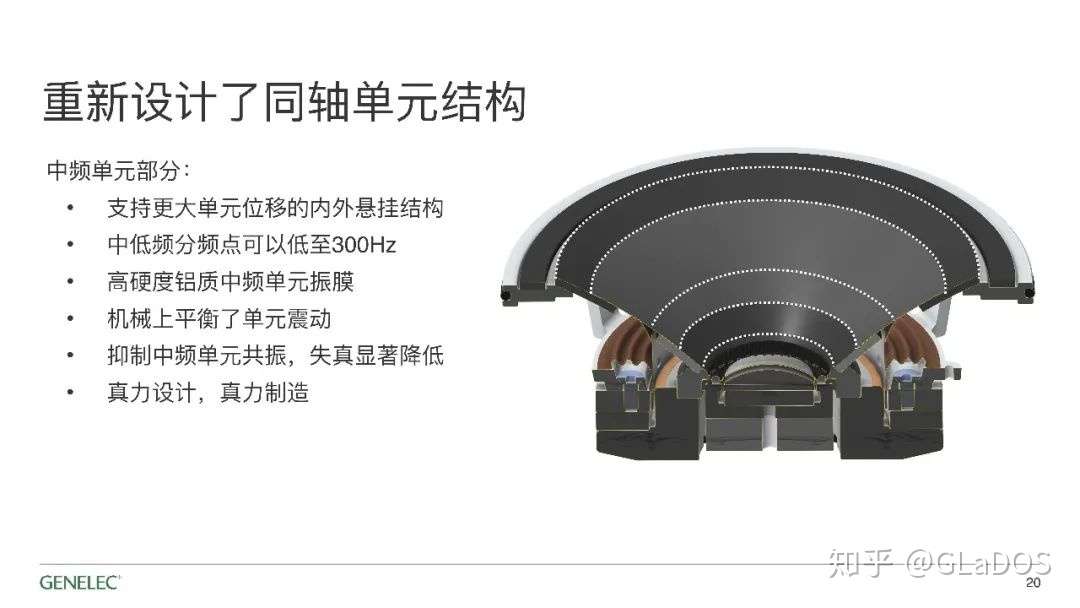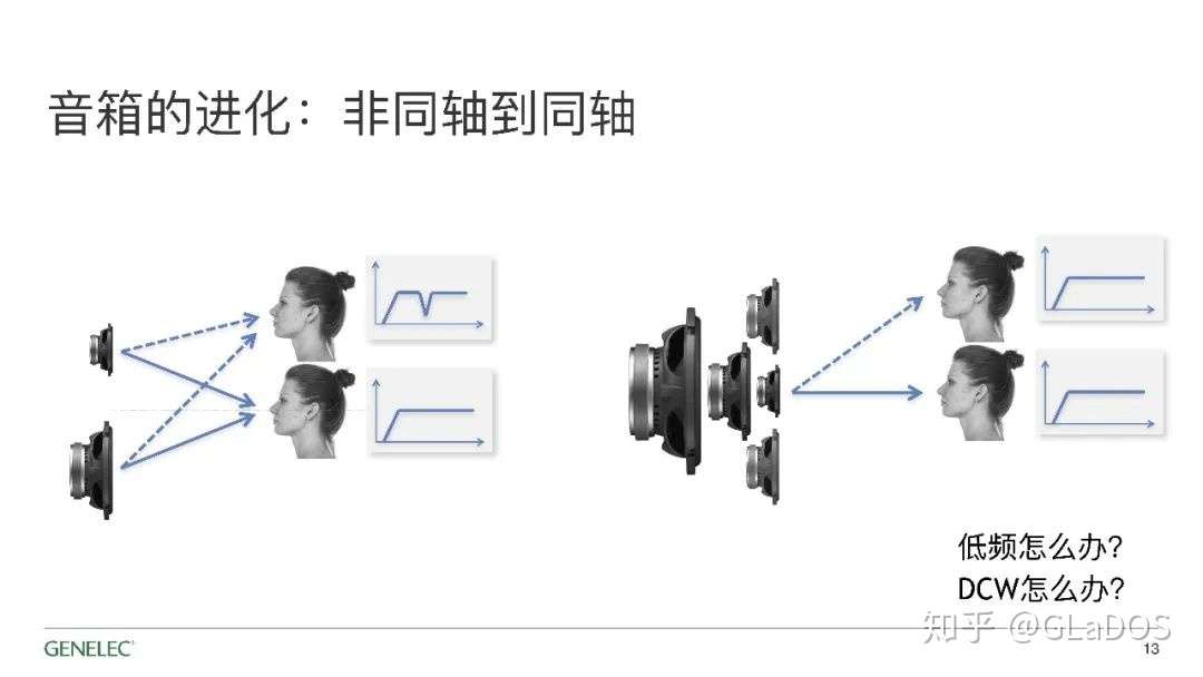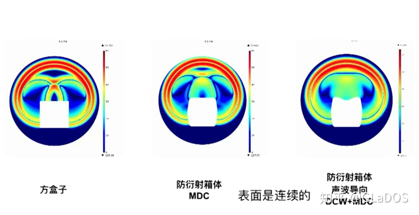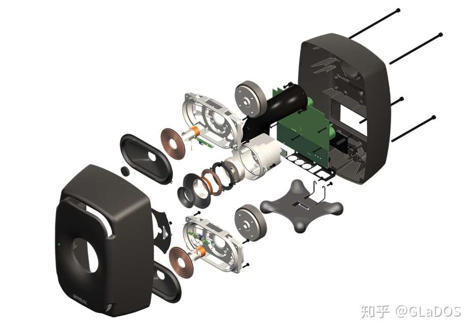 需要长期使用音箱的录音师们往往对避免听觉疲劳格外关注比起扩展频响范围来说,对于频响精度与失真度的追求则是更加系统的工程,真力工程师也为此做出了多方面的努力,这里只列举几个例子。 首先,真力从8000系列监听音箱开始,就全部采用了压铸铝材质的箱体,其主要目的就是为了减轻箱体共振/共鸣造成的失真。同时,压铸铝比中密度板的另一个好处是方便做成现在这种圆滚滚的形状而不会占用太厚的内部空间,这种好像方盒子音箱长胖了一样的外形被真力称为MDE最低衍射箱体,它的作用是降低声波在音箱棱角处的衍射,从而得到更加平直准确的频响曲线。而8361的箱体也是目前真力产品线中体积最大,也是加工难度最高的铝制MDE箱体。  从方到圆,真力音箱外形的进化细心的朋友可能会发现,上面这个声波辐射示意图中最右侧代表8361的图示中有两个陌生的单词,DCW与MDC,他们的作用我会在下文坐标7中解释。 单元配置方面,真力工程师发现,三分频音箱在同体积下比两分频音箱有着更好的失真表现,原因是显而易见的——独立中频单元的加入解放了低频与高频单元的负担,让每只单元能在较窄的频段内更加线性的工作,自然降低了全频段的失真度。 同样条件下三分频比两分频结构拥有更低的失真