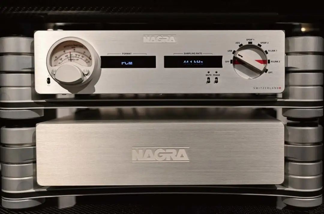 TAIKO SGM Extreme音乐服务器和金驰“教皇”旗舰音箱如此优异的硬指标,无论外观还是声音都令人印象深刻,当然,很容易被小看的瑞士NAGRA(南瓜)HD DAC X 旗舰分体解码器是行业中个头最小价格最高的,瑞士南瓜的机器都是小巧精致,都知道很贵,而且是行业中个头最小价格最贵了!NAGRA HD DAC X 旗舰解码器同上一代HD DAC一样使用超级虚拟电池技术,不过随着各种高格式音乐文件的发展,Nagra设计了这台加强版新旗舰解码器HD DAC X,除了AES/EBU、S/P DIF(RCA与BNC各种输入一应俱全,还配置了两组ST光纤的Nagra Link端子以供的高清音源使用。DSD之父、AK Design负责人Andreas Koch设计的解码线路,让这款新旗舰解码器的噪声水平比HD DAC低了30倍,达到令人匪夷所思的 -160dB噪音水平新纪录。-160dB噪音水平是什么概念,也就是说“不可能的任务”,前不久就在某论坛看到一些发烧友对NAGRA HD DAC X 旗舰解码器这个-160dB水平的最多讨论就是说目前世界上还没有仪器能够测量出来,但以Nagra品牌口碑和技术恐怕这指标也不是乱标的,毕竟有些专业仪器不是我们发烧友有能力接触到,有些仪器还涉及到军工或者非常专业的领域。豪华壮观的分体的电源设计部分用料可谓是前所未有的使用了特殊材料,超级虚拟电池技术也是南瓜产品靓声的关键设计之一,在分体式的电源箱中,采用11支美国Maxwell的BCAP0050 2.7V双电层超级电容器,类似电池方式供电,效果媲美电池供电但却没有电池的缺点!而这部解码器的心脏南瓜用高导磁金属Mu金属制成的金属盒,可以有效屏蔽电磁干扰,Nagra的72Bit FPGA运算升频为DSD 256格式再解码,这也是目前最强的的处理方式,密封盒里,还有数字输入端的滤波处理。电子管放大也是Nagra经典的设计思路,NAGRA HD DAC X 旗舰解码器的模拟线路使用了双单声道结构和电子管放大,解码后的信号经过对称电流放大器,大大降低了阻抗,上升时间仅为1800伏/秒,没有负反馈也没有增益。模拟音乐讯号的电压增益主要通过两只升压变压器与单端的军规JAN5963(12AU7/ECC82/5814A)电子管进行,Nagra自家工厂经验丰富的老师傅手工绕制的升压变压器拥有令人惊讶的频宽而且讯噪比很高,但这样一来但成本就比晶体或电子管都高多了,同样的,Nagra毫不吝啬地使用了成本高昂的输入变压器,在声音的追求上也是毫不妥协的!