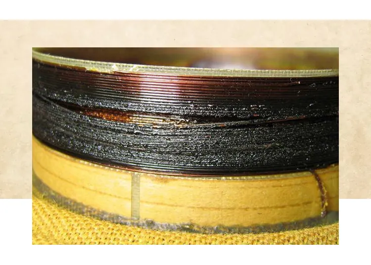 ▲ 烧毁的音圈 扬声器系统的功率承受能力取决于许多因素。首先,特定声音的持续时间是多长?音乐由一系列“峰值”组成,虽然大部分时间您可能平均使用 1 到 10 瓦的功率来聆听,但表现峰值声音可能需要10到20倍的功率。