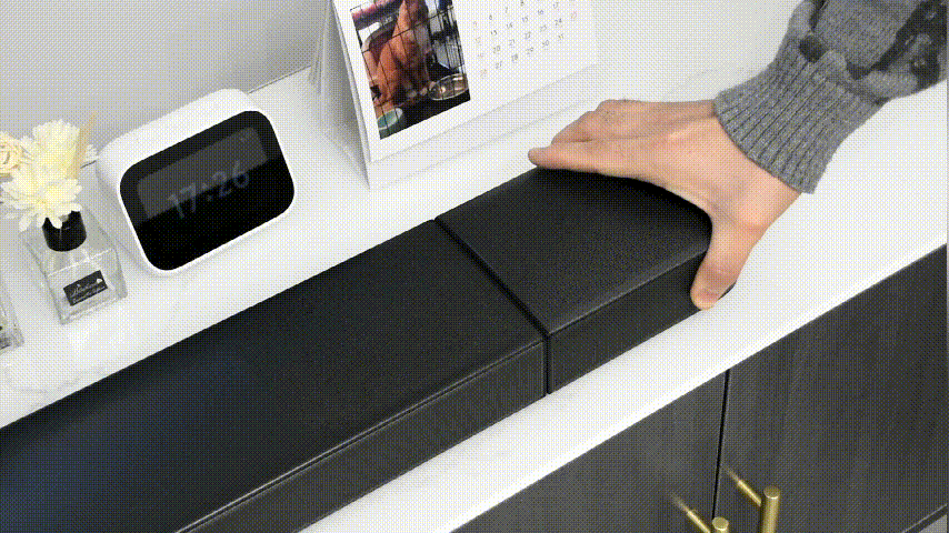 这两个可拆卸的无线扬声器配合低音以及条形音箱我们可以组成5.1.4环绕立体声,两个小巧的扬声器可以放在你想要放的任何地方,随包装附赠的防尘盖可以插在无线扬声器和长条音箱两侧,地面或者桌面使用都没啥问题。