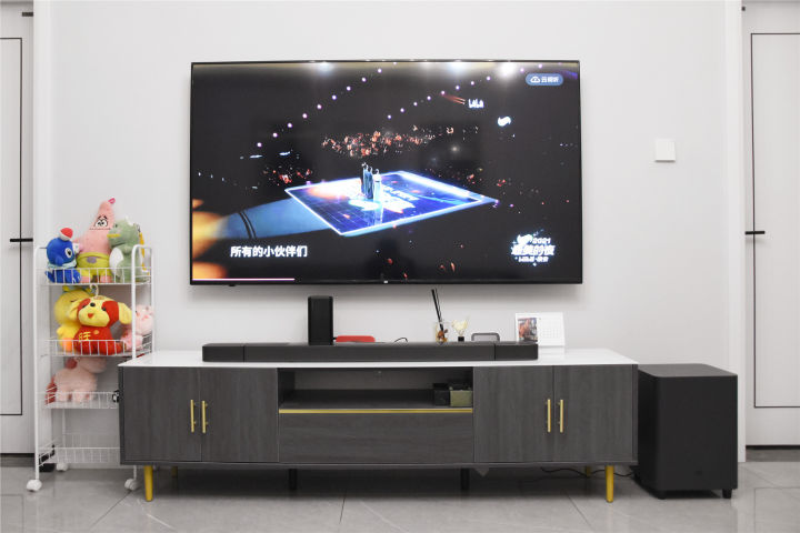 新家刚入住总是想要添一些“硬家伙”,尤其是经常瘫着的客厅,身边有些人说客厅要换投影,这样观影追剧的体验才会更好,而我觉得很多投影在太阳光下的体验并不好,索性我就来个75寸的大电视,视觉体验和投影也差不了多少。满足了视觉感受总感觉还差点什么,对,是声音,电视的声音是在屏幕的后方,而我们在电影院的声音是来自四面八方,再加上低音,所以才会有那么震撼的感觉。