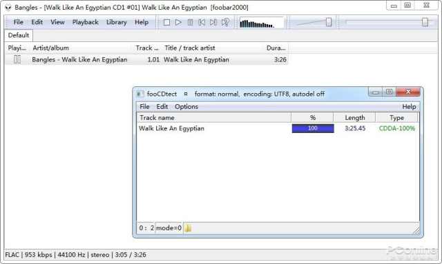 简单来说,Foobar2000有一个颇为神奇的无损识别插件“fooCDtect”。在Foobar2000安装了这款插件后,就可以通过“转换”菜单找到“辨别无损”的选项。你可以在播放列表中选中N首歌,然后一次性进行无损辨别。如果结果显示的是“CDDA-100%”,那么就说明这肯定是真无损,否则就有可能是假无损。