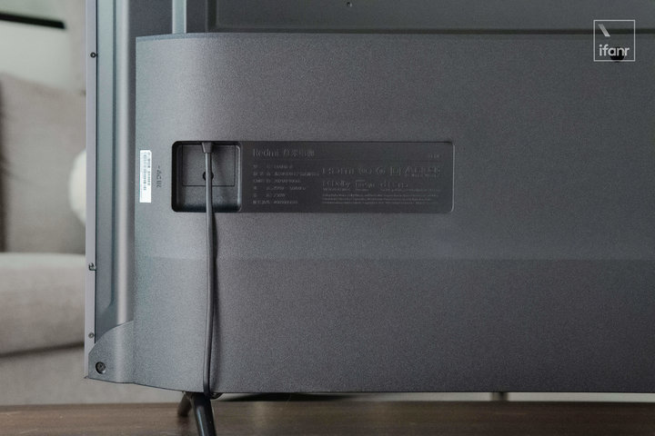 有处明显节省了成本的地方是背板,整块是塑料材质。在此省本也并非 Redmi 抠搜,我的理解是大多家庭的电视都靠墙而立,因此即使这里有点「廉价」也并无大碍。至于节省下来的部分,Redmi 另有打算。