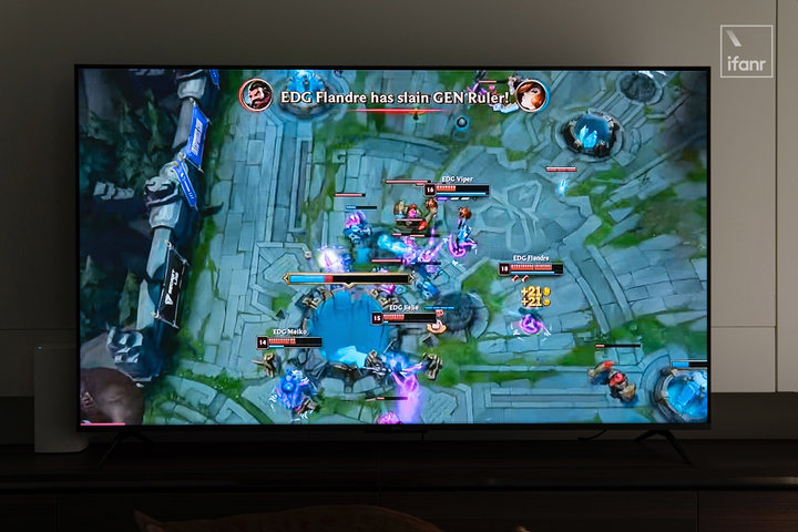 要体验这两者相加带来的顺滑,还是得注意片源的清晰度。就像我见证 EDG 夺冠的那夜,B 站大电视的直播源并非 4K 高清。电视显示的游戏画面虽然有一定程度的优化,在第四局抢土龙、决赛局在 DK 老家结果许秀的几个瞬间, 少了丝滑体验就如喝拿铁没加奶,不够味儿。