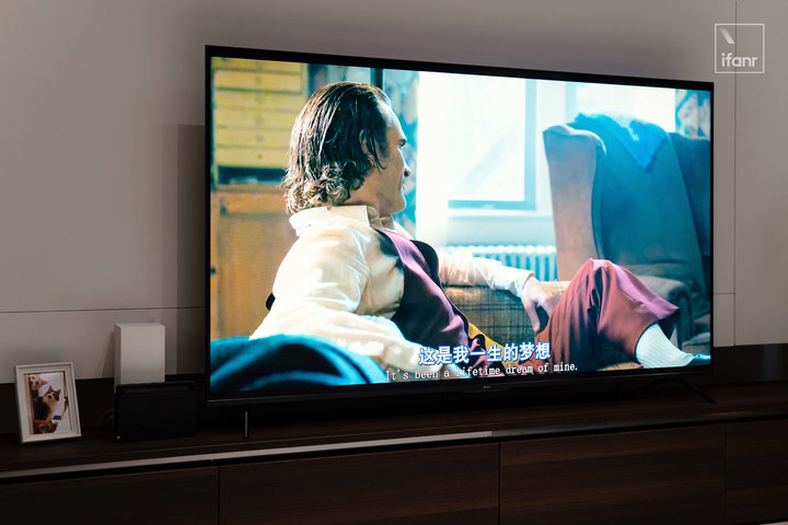 同样因为这颗芯片,即使没有和小米电视 6 至尊版一样的片源优化 AI-SR 超分技术,但在观看低分辨率片源时,Redmi 智能电视 X 2022 款还是有一定程度的画面优化。像是 1080P 的《小丑》优化后虽达不到 4K 级别的清晰度,但亚瑟的头发丝以及落在上面的光清晰可见。